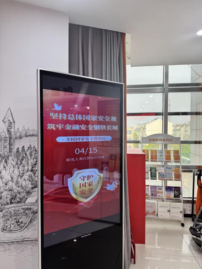 各机构立足柜面网点主阵地,以电子屏滚动播放、海报张贴、宣传折页摆放、专题宣讲等形式,营造浓厚宣教氛围。阳光人寿海南、天津、四川、山东、上海、青岛等分公司,宁波、延安、邵阳等中支,通过早会学习、专题解读、案例警示、知识问答等方式,系统讲解《国家安全法》《反间谍法》《网络安全法》,明确公民维护国家安全的法定义务,强化员工保密纪律与风险防范意识。